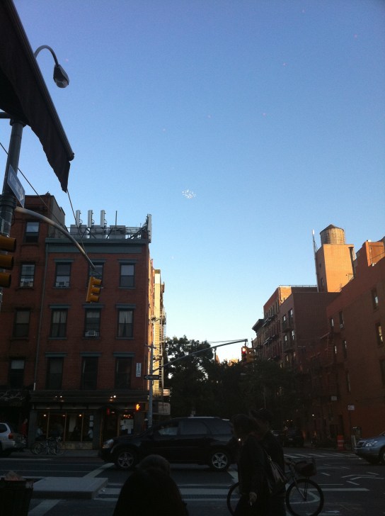 I’m sitting at a café on 10th street and 1st Avenue, sipping a tea and snacking on an amazing breseola and parmesan Panini. Until one minute ago, I was 3 sentences into a blog post about The Social Network and the concept of isolation in entrepreneurship (which I will write after this). As I gazed over the building line to a light blue sky, searching for the words that could best describe entrepreneurial isolation, something happened. Out of nowhere, a flock of let’s say 50 white birds, that I can only assume are doves, appeared in the margin between the buildings that line the north and south sides of 10th st. They began to circle inside the frame created by the tops of the brownstones and as they did, they waned in and out of visibility depending on weather they were facing a direction that allowed their white bodies to properly reflect the lowering sun behind me. The image of the white flock against the blue back drop was striking, bit it was really the prolonged movement in circles and repeated flashes of white disappearing and reappearing, coupled with the contrast between the silence and grace of their movement and the ambient conversation and city sounds of 1st avenue, that made this occurrence noteworthy. They circled for more than a minute, and as I watched their dance my immediate instinct was to Share.