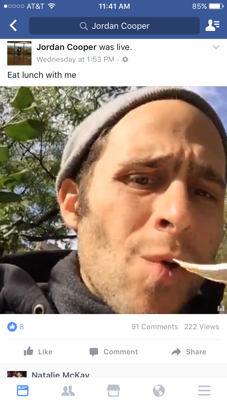 Last week I livestreamed my lunch on Facebook…roughly 60 friends joined me as I ate alone in Abington Sq Park, and another hundred or so probably watched a recording of the live lunch that I published to Facebook after the session ended. My sister emailed me the next day and asked if I wanted to meet for lunch because “I seemed kind of lonely on my FB Live lunch.” I tried to explain that I wasn’t lonely at all, that live video is a thing now, and I was experimenting with a new publishing medium…but even after more explanation of the live streaming dynamics in China, why I was doing it, how people are making money doing it, etc…I’m not sure she’s totally on board.